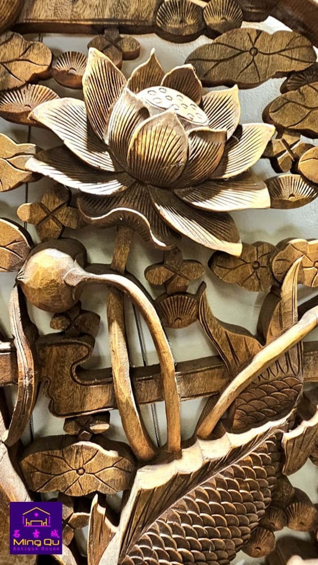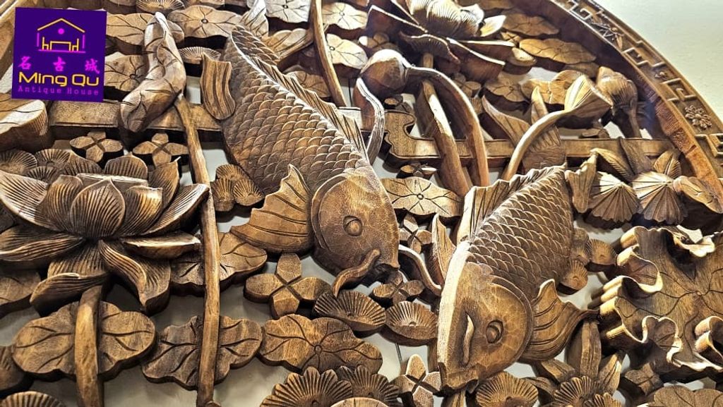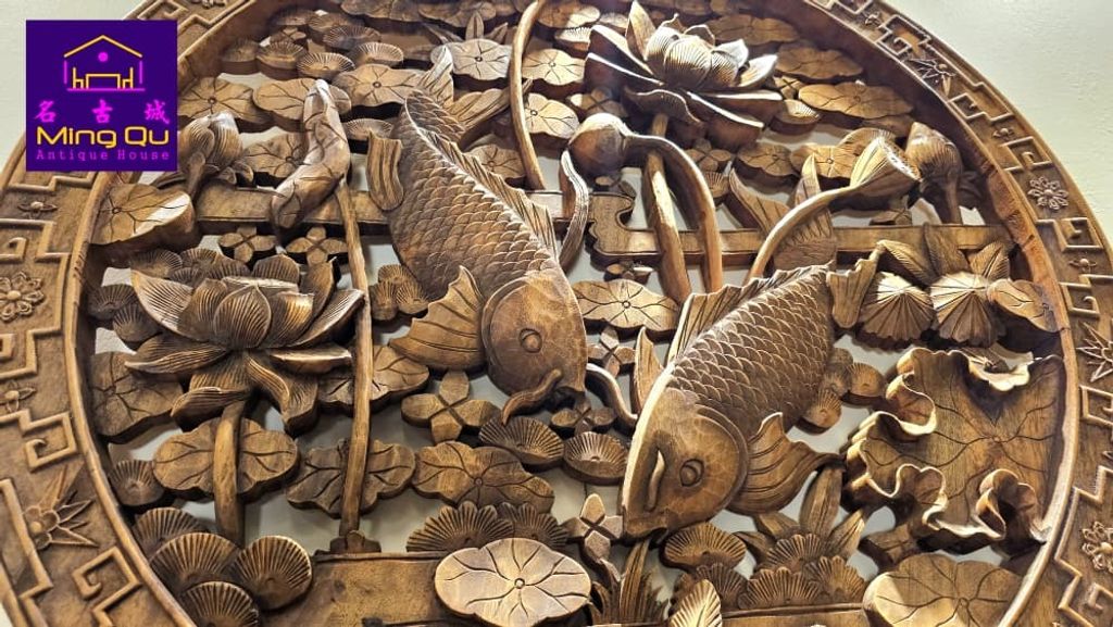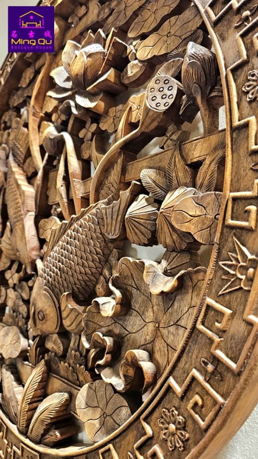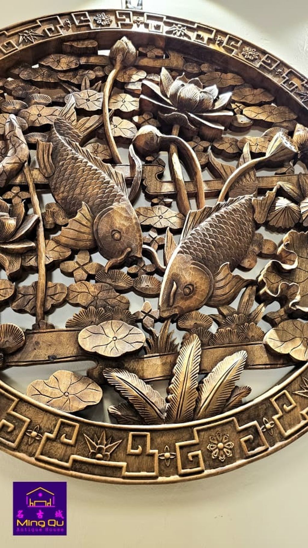Camphor wood Round Fish Wall Panel 樟木圆鱼花板 (Diameter 70cm)