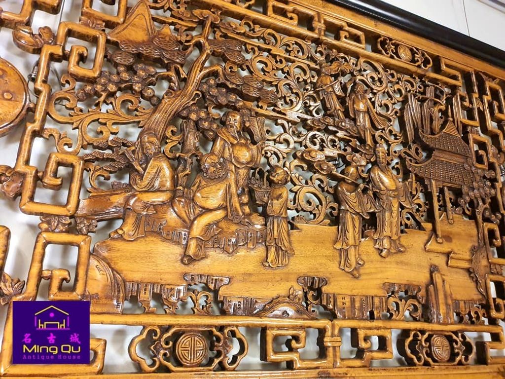 Elm wood Eight Immortals Wall Panel 榆木八仙花板 (L131,T4,H68cm)