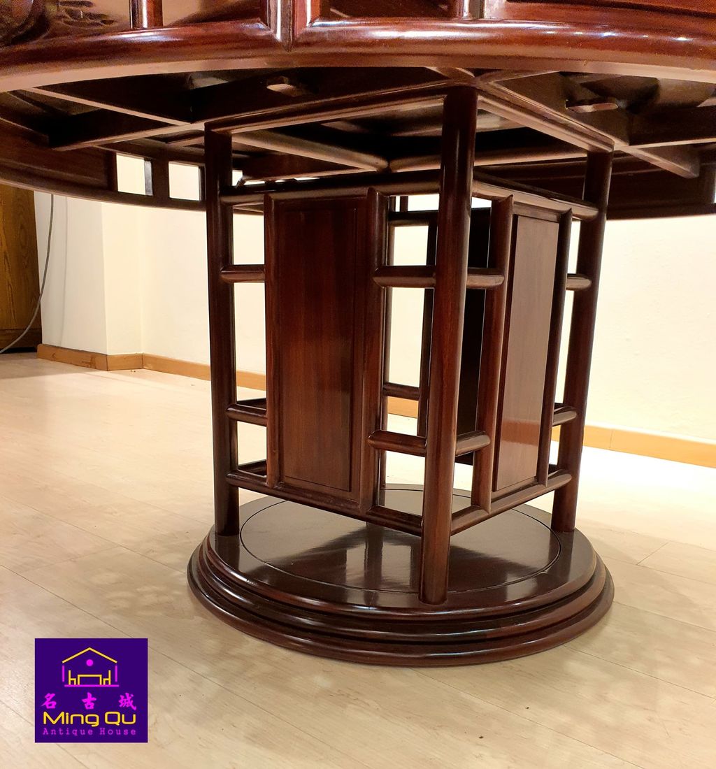 Red Ebony wood De Li Dining set of 8pcs 红檀木得利餐枱 配8张椅子 (Diameter 136,H75cm)